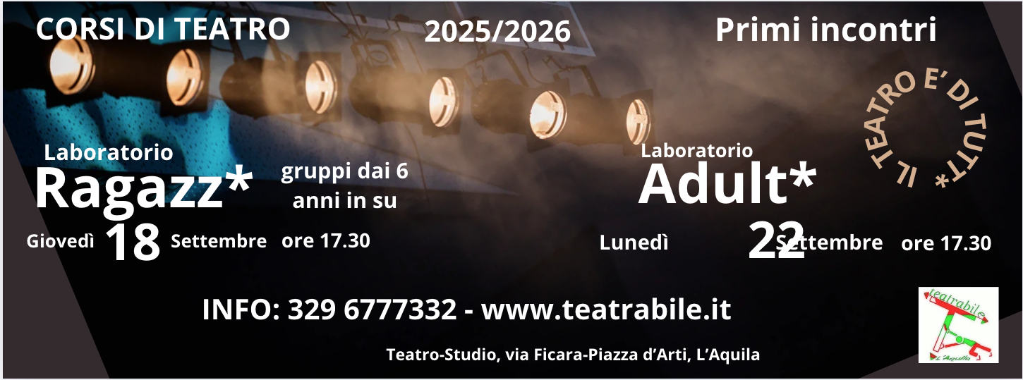 Associazione culturale TEATRABILE, via Ficara -Piazza d’Arti s.n.c. 67100 L’AQUILA- p.iva 01718120668, c.f.93007990661